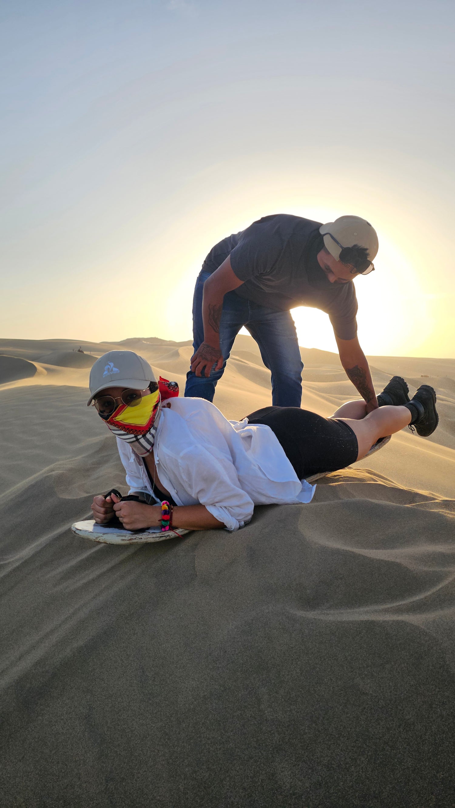 Ya en el desierto, viviremos una aventura en buggies entre dunas y paisajes dorados, y nos deslizaremos por la arena practicando sandboard, guiados por un instructor local.