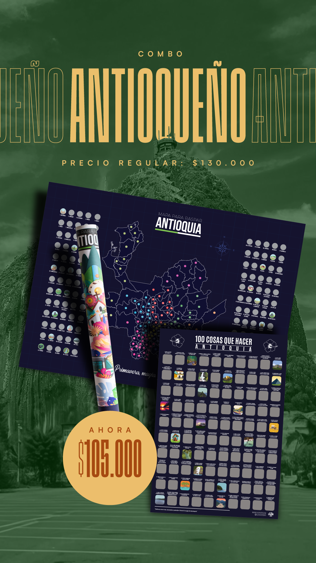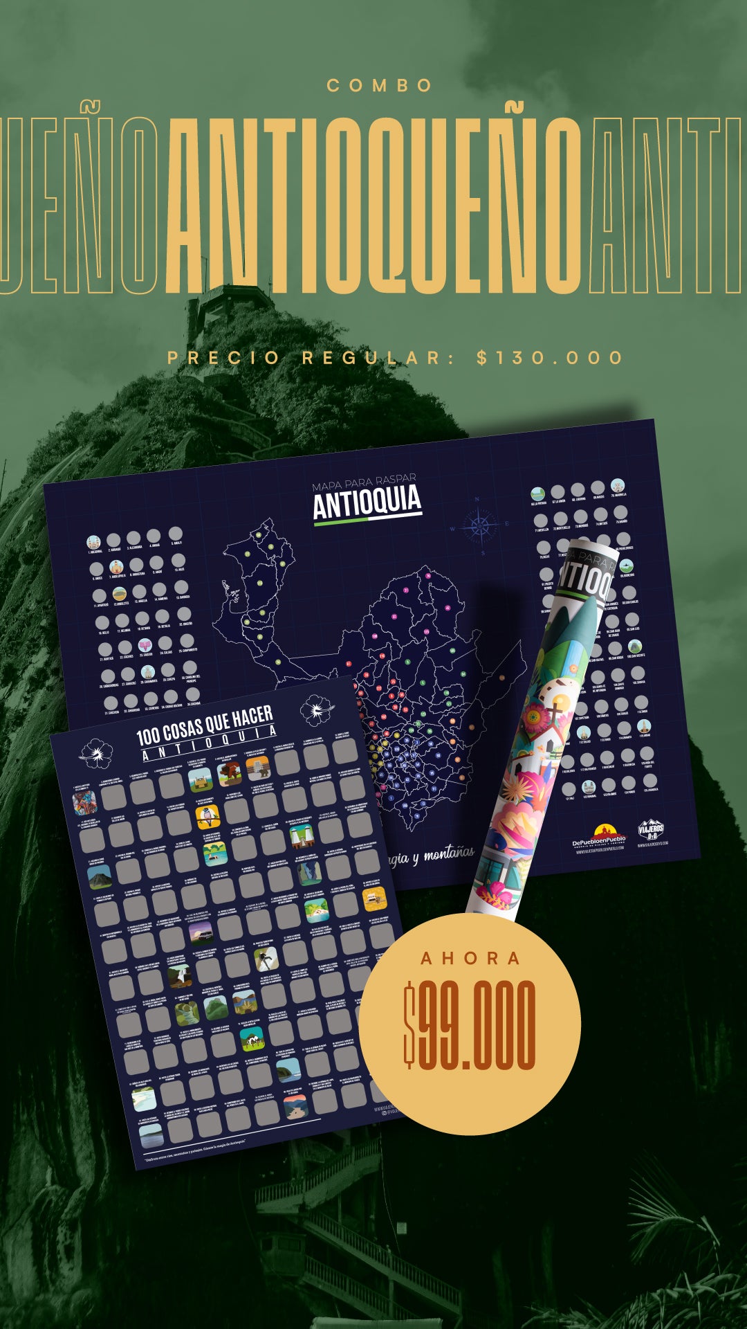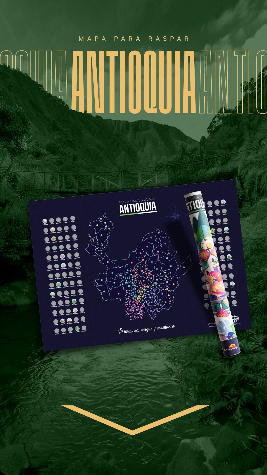 Mapa de Antioquia + 100 cosas que hacer en Antioquia + Mapa de Colombia