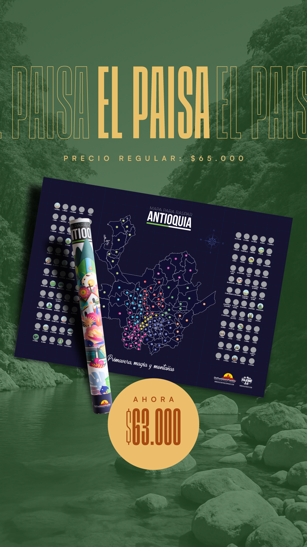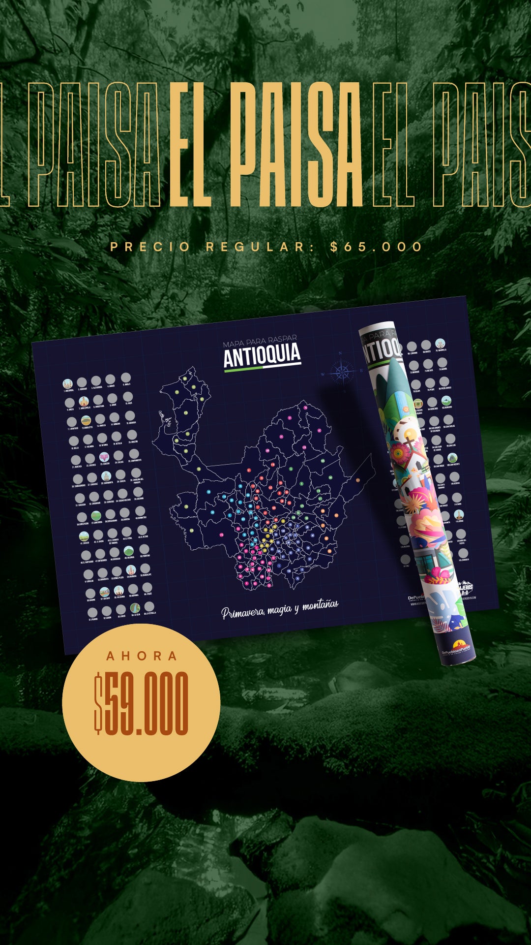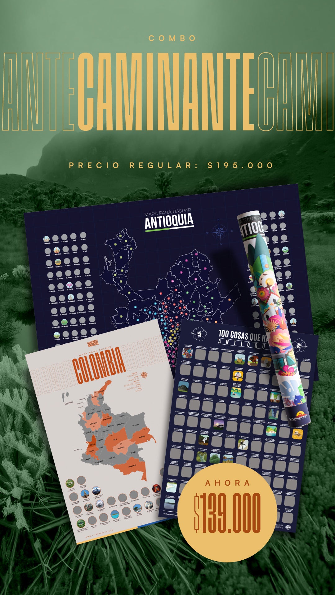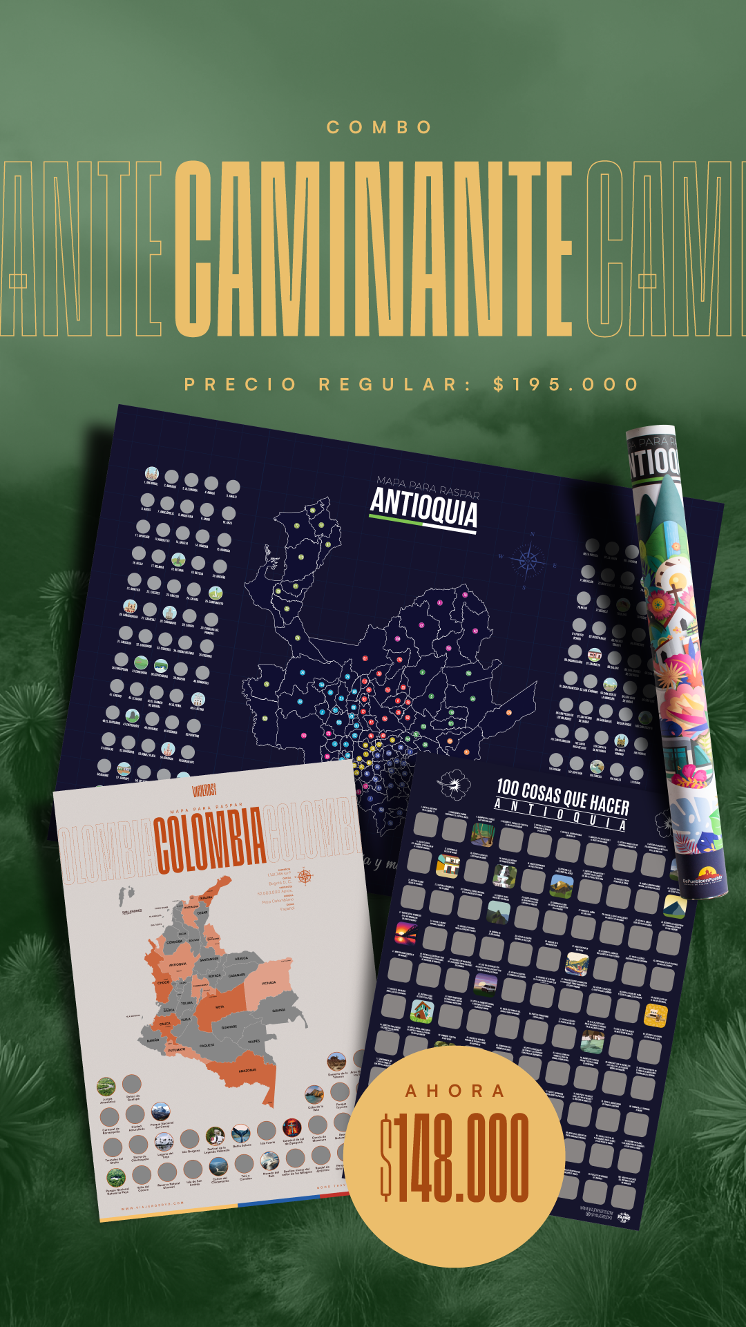 Mapa de Antioquia + 100 cosas que hacer en Antioquia + Mapa de Colombia